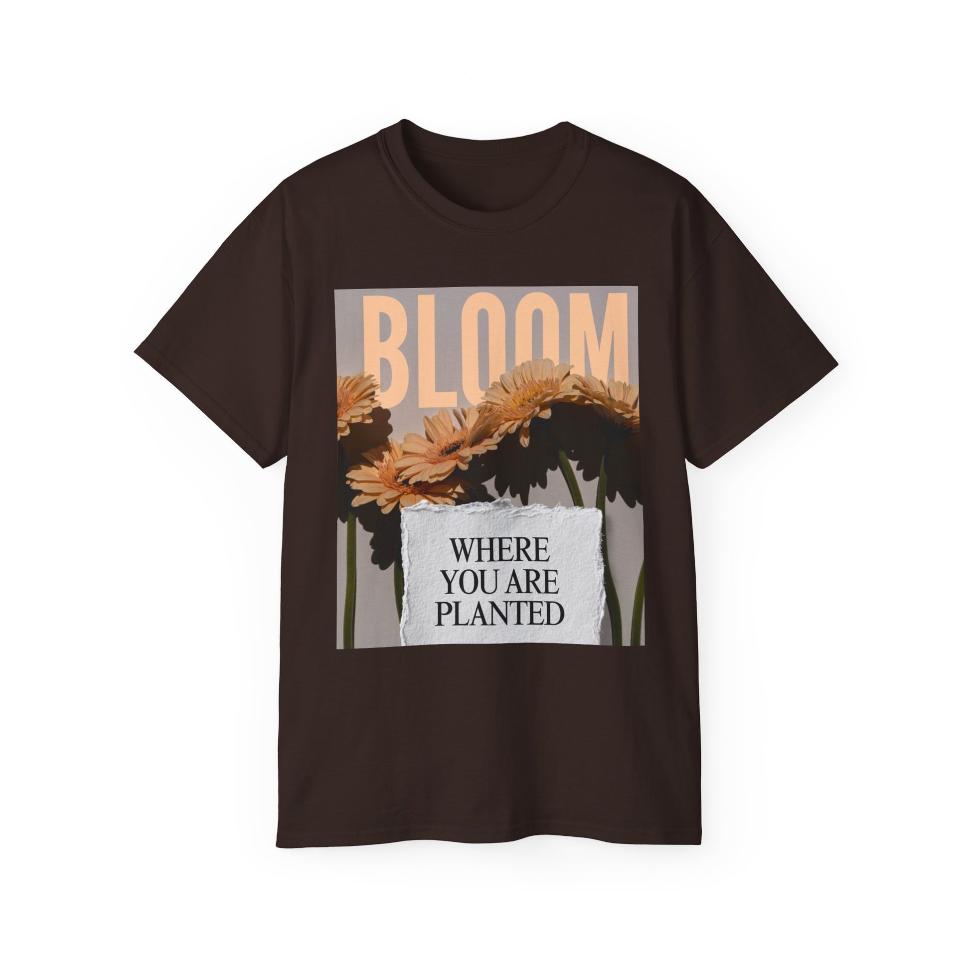 Embrace comfort and style with this unisex ultra cotton tee, designed for all-day wear. The vibrant 'Bloom Where You Are Planted' design inspires positivity and growth, making it a perfect choice for those who love to express their unique mindset. Ideal for casual outings, this tee pairs effortlessly with jeans or a skirt, adding a touch of motivation to your everyday life. It's a thoughtful gift for friends and family during celebrations like birthdays, housewarming parties, or just because! Suitable for adults, this shirt speaks to anyone seeking to remind themselves or others of their personal journey. Whether it's a summer picnic or a cozy evening at home, this comfy tee fits right in, adding cheer and inspiration all year round.