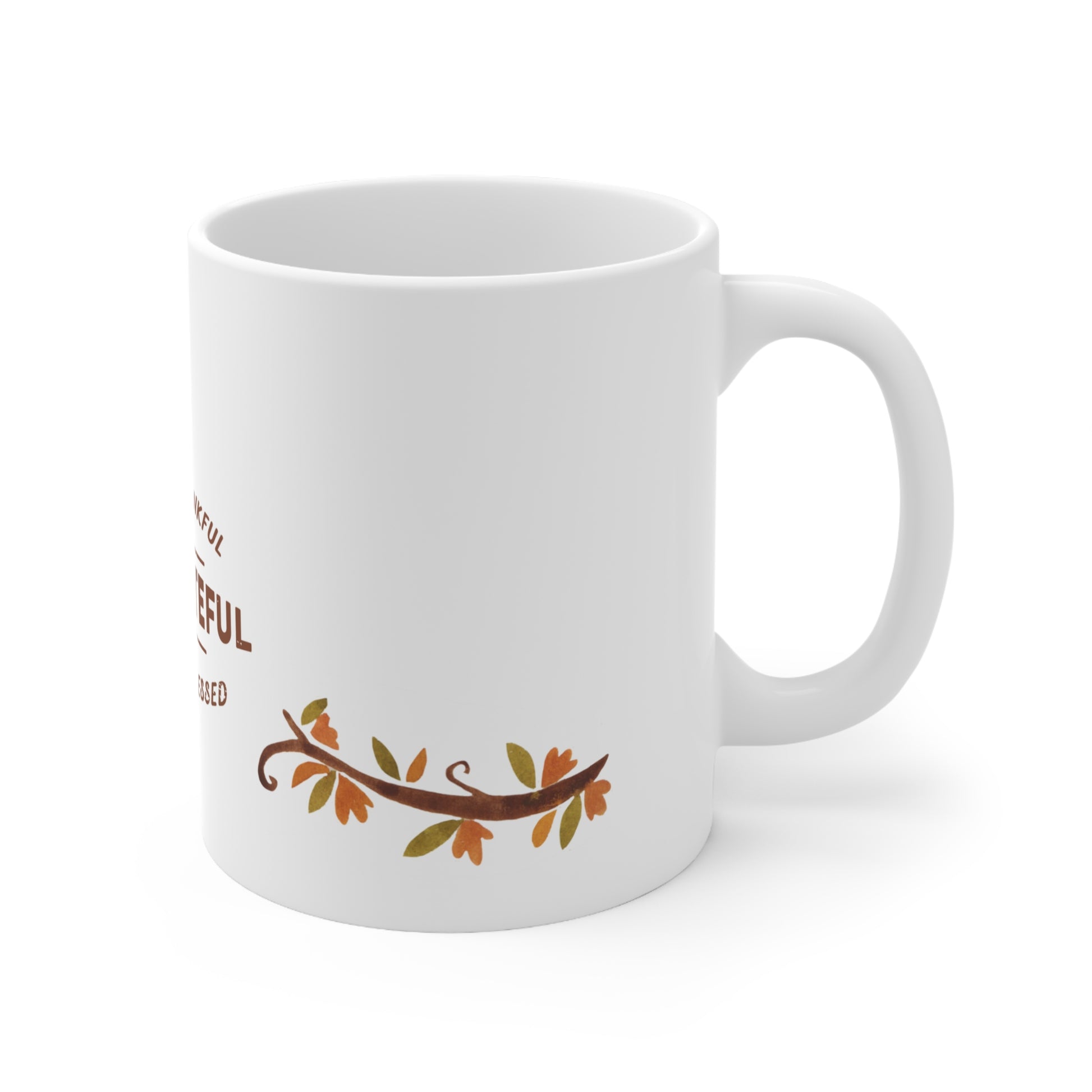 This beautiful ceramic coffee cup is perfect for cozy mornings and relaxing evenings. With its vibrant colors and inspiring phrases, it exudes warmth and positivity. Whether you're sipping your morning brew or enjoying a soothing tea, this mug adds a touch of joy to your daily routine. Ideal for coffee lovers and those who appreciate uplifting decor, it makes a wonderful gift for friends and family during the fall season, Thanksgiving, or any occasion that celebrates gratitude and togetherness. Enjoy your favorite beverages in style with this charming mug that resonates with the spirit of appreciation and blessed moments.